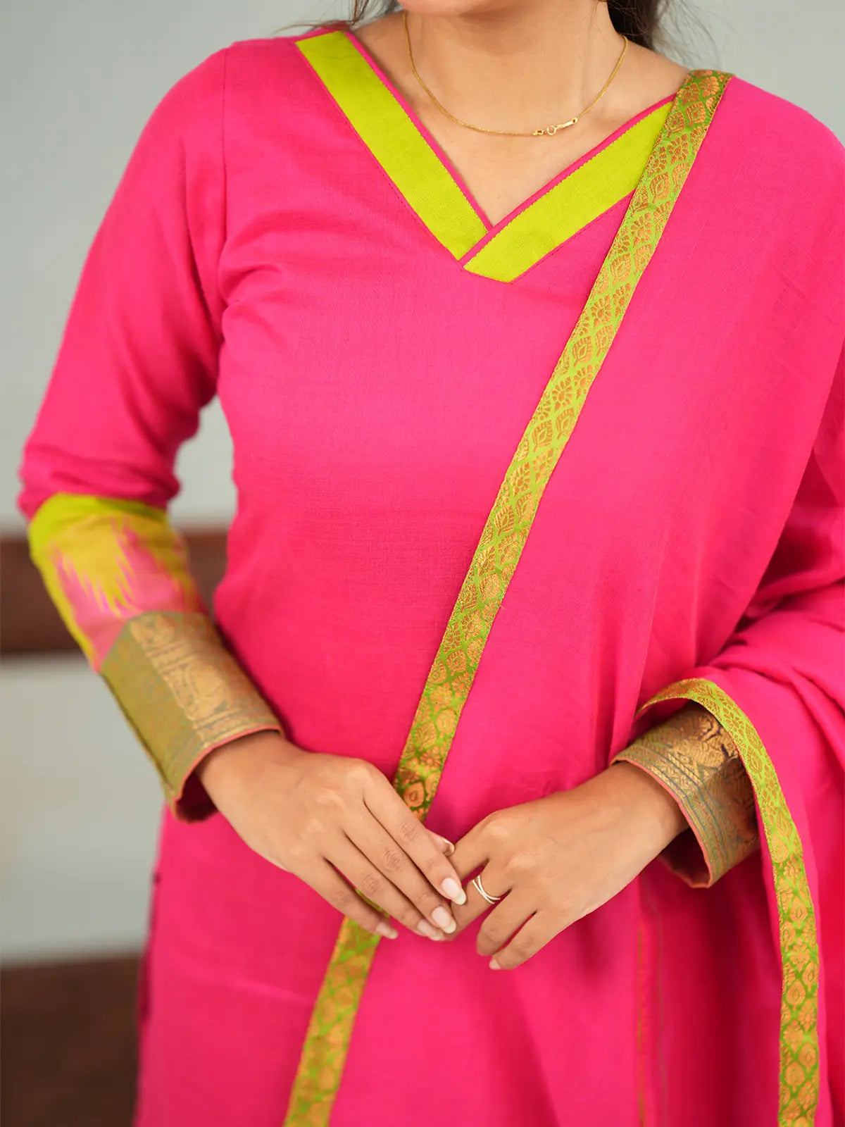 A stunning harmony of deep emerald tones with soft blush accents, this look brings out both sophistication and subtle romance. Perfect for those who love a graceful yet refreshing vibe.