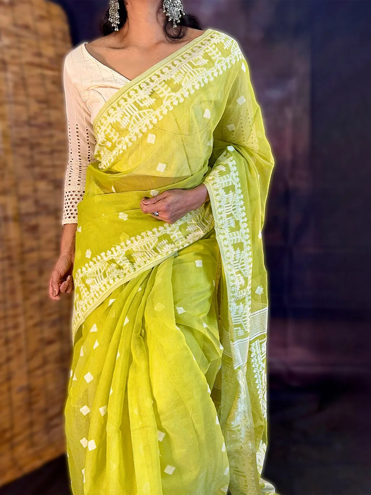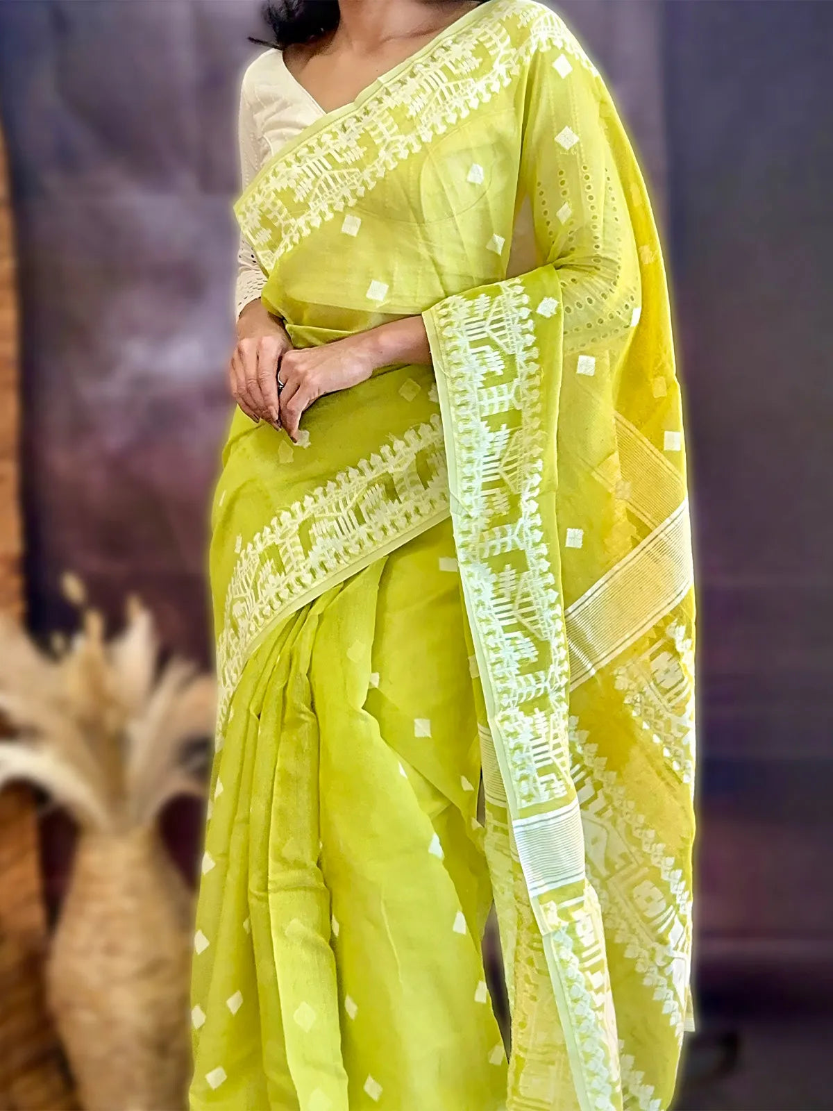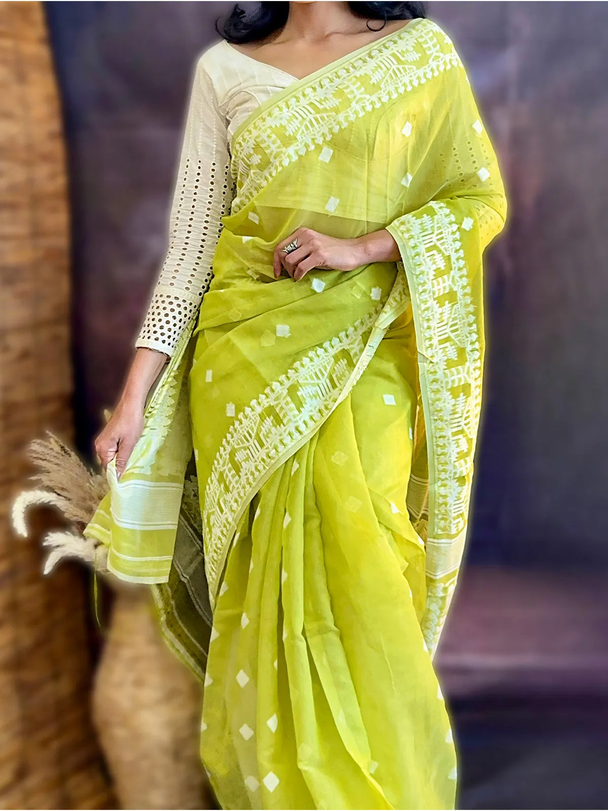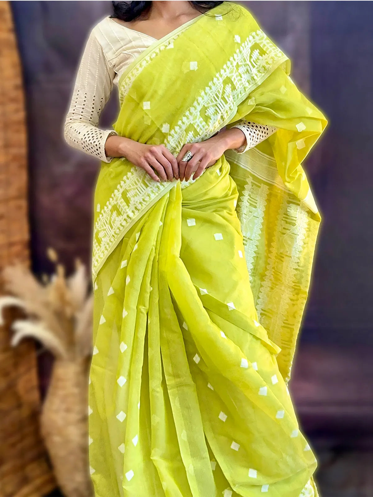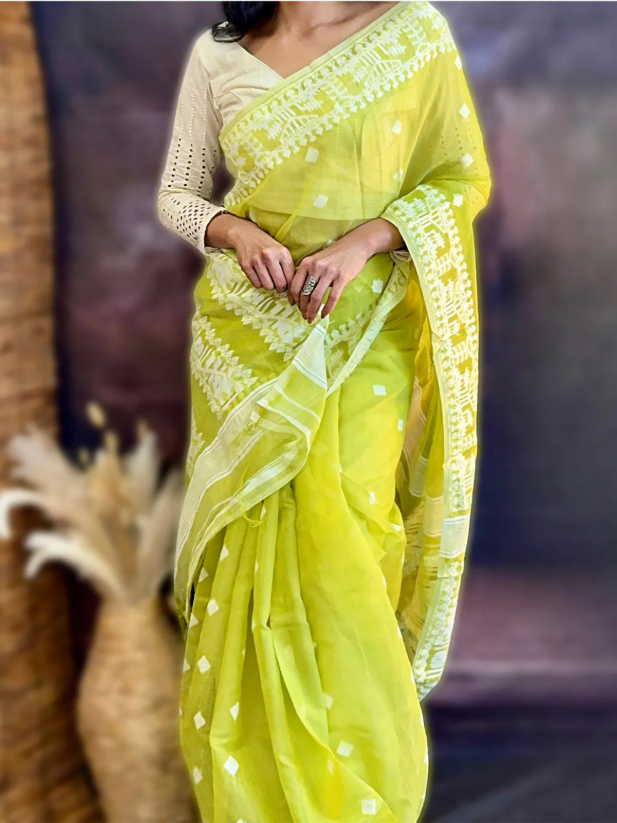 A masterpiece of handloom tradition, the Jamdhani saree is known for its intricate weaving and timeless grace. Elegant, lightweight, and effortlessly stylish, itβs perfect for both cultural occasions and everyday elegance.